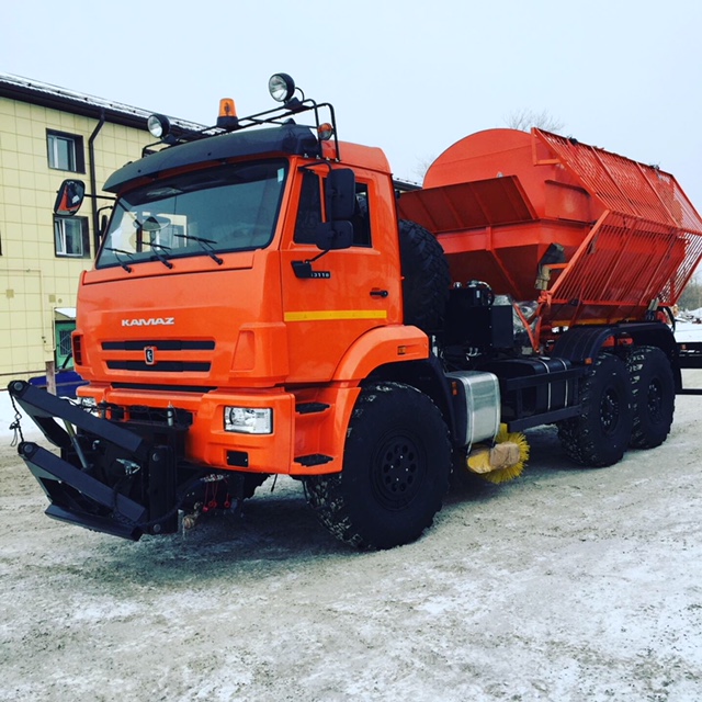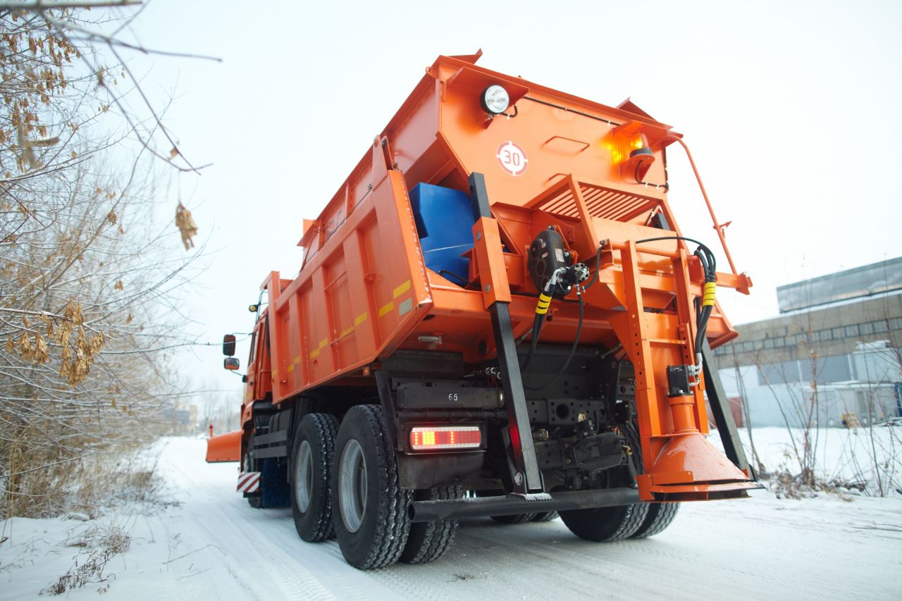 Зимой комбинированная дорожная машина с пескоразбрасывающим оборудованием становится основным инструментом борьбы с гололёдом. Бункер для песко-соляной смеси и регулируемый разбрасыватель позволяют точно дозировать материал и равномерно распределять его по полосе движения. Это не только повышает безопасность, но и снижает расход реагентов за счёт точной настройки.